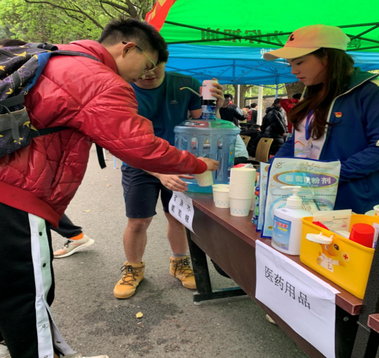 党员志愿者为考生提供免费饮用水、葡萄糖服务