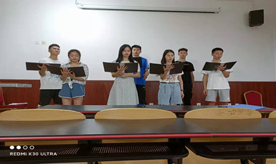 此次活动从4月30日开始进行策划,5月5日制定节目单,5月8日开始排练,总共分为5支队伍,研究生一支部的33名党员同志以三个党小组为单位分为三支队伍,17名积极分子组成一支队伍,18名入党申请人组成一支队伍。所有同志为了呈现出更好的节目效果,在有限的时间里加紧排练。