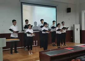 各小组用饱满的热情和衷心的热爱,唱出了对祖国、对党的崇敬和眷恋,讴歌中华复兴伟业,唱响奋进新时代之声。比赛之前,各个小组抓紧最后一分钟进行排练,力求完善每一个细节。他们意气风发,有序等待上台一展歌喉,展现自己努力排练的结果,为党和国家献上最真挚的祝福。经过两个小时热情澎湃的表演,最后每个小组进行公平公正投票,最终选出本次表演活动的前三名,他们分别是:积极分子队、第三党小组、第二党小组。