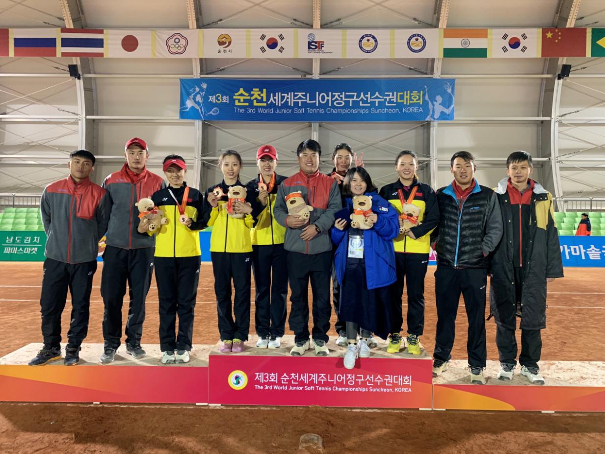 2018年11月18日至11月24日,第三届世界青少年软式网球锦标赛在韩国顺天盛大开幕。我校3名学生代表中国软式网球队参加比赛,表现突出,一举获得3枚铜牌。