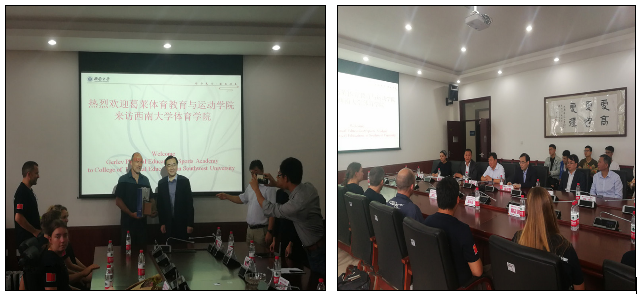 2018年5月28日,丹麦葛莱体育教育与运动学院副校长Lars Koed Mogensen、项目负责人Martin、高志鹏老师以及15名学生来我校体育学院访问,我校党委副书记徐晓黎出席了本次欢迎会并讲话,参会人员还包括国际处副处长张家政、体育学院院长郭立亚、副院长刘斌和黄晓灵,并热情接待了客人。会议上交流了两校多年合作的宝贵经验,并向三位老师和15名来访学生赠送了礼物。