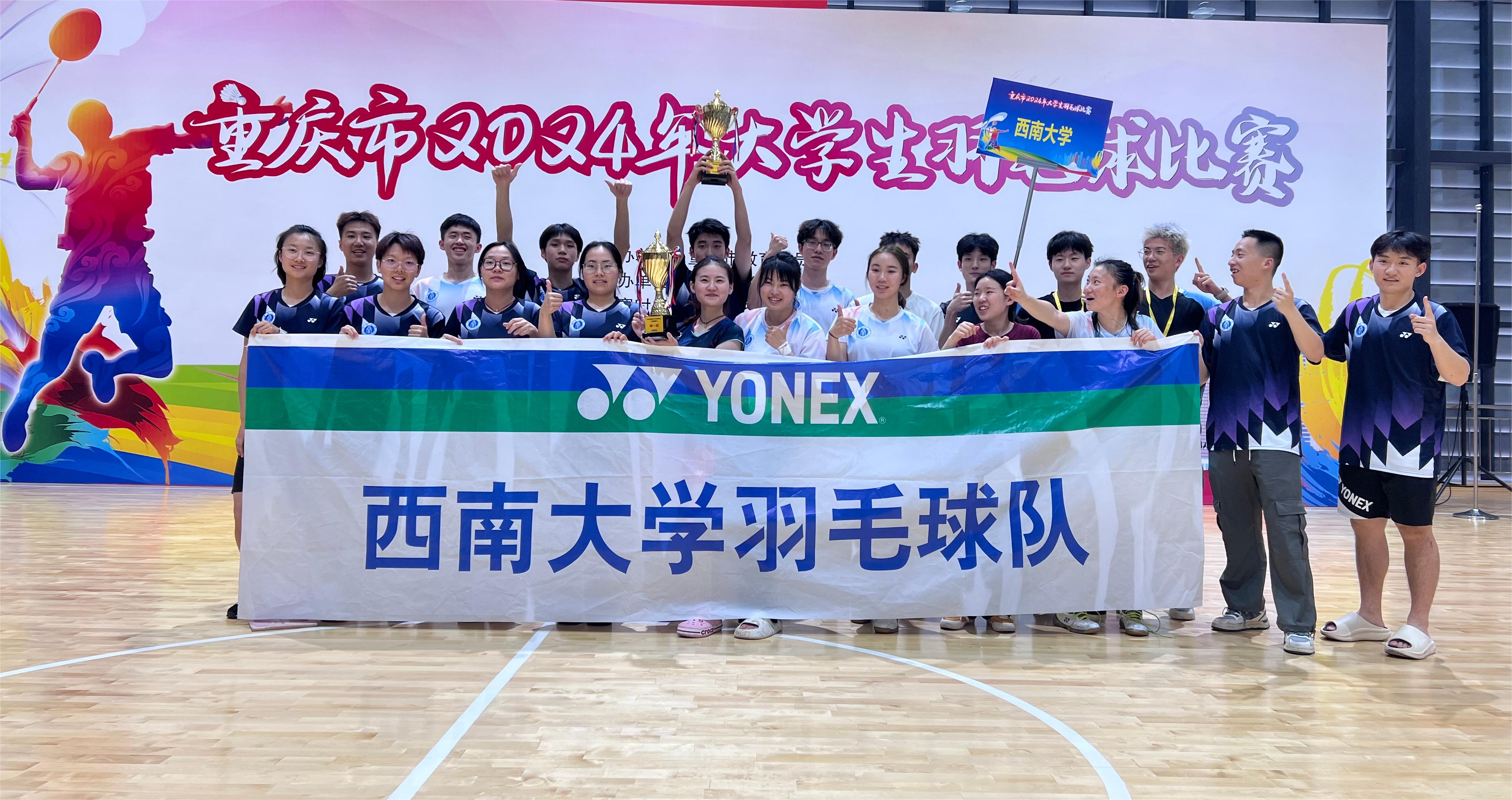5月12日至5月16日,重庆市2024年大学生羽毛球比赛在重庆大学举办。学校丙组运动员包揽男子、女子团体第一名,荣获2个单项第一名、4个单项第二名、1个单项第三名;甲组运动员荣获2个单项第二名、1个单项第三名以及团体第五名。