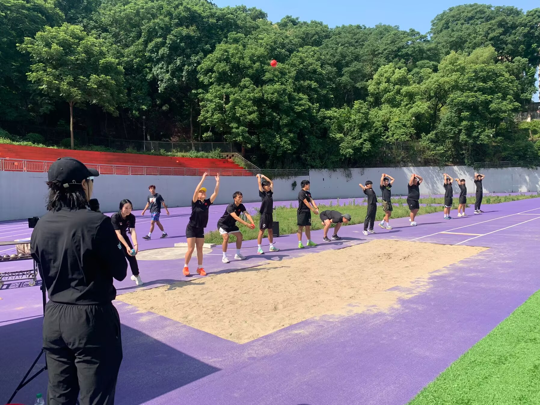 此次培训吸引了来自校内校外的29名学员参与。培训采取线上与线下相结合的教学模式,其中,线上理论学习阶段于2025年6月8日至2025年6月12日提前结束;线下课程邀请到西南大学赵棚川老师,西南大学胡志英老师两位田径专家进行授课,为学员提供了涵盖田径项目(短跑、接力、中长跑、竞走、跨栏、跳远、跳高、三级跳远、撑竿跳高、铁饼、铅球、标枪、链球等)的基础技能及教学步骤、训练实践、训练计划制定等多个方面的讲授,科学全面,注重了理论与实践的结合。在培训期间,天气十分炎热,学员们顶着烈日坚持参训,充分展现了学习热情和刻苦精神。